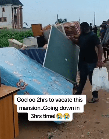 Moment Lagos residents hurriedly pack their properties out of mansion due to be demolished in 2 hours