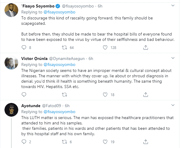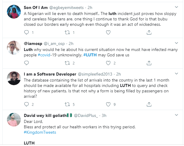 Nigerians have expressed outrage following the death of a man who died of Coronavirus at Lagos University Teaching Hospital (LUTH) after lying about his travel history upon being admitted at the medical facility.