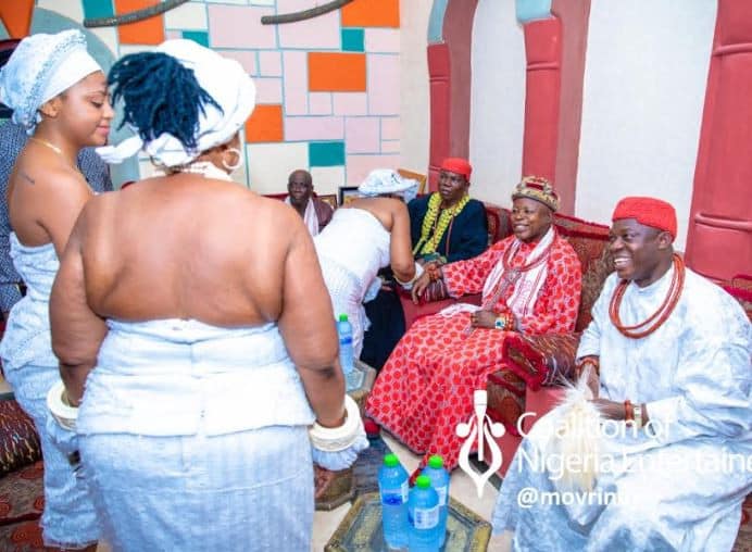 Colleagues of Actress Regina Daniels in the Nollywood Industry, members of Coalition of Nigeria Entertainers and other celebrities which includes, Amb. Kenule Nwiya, Chinedu Ikedieze, Charles Inojie, Ejike Asiegbu, Sydney Sparrow, Vichiano, MC Bob, Shortcut, MC Papi, Movrine studios etc were all present at the induction ritual ceremony.