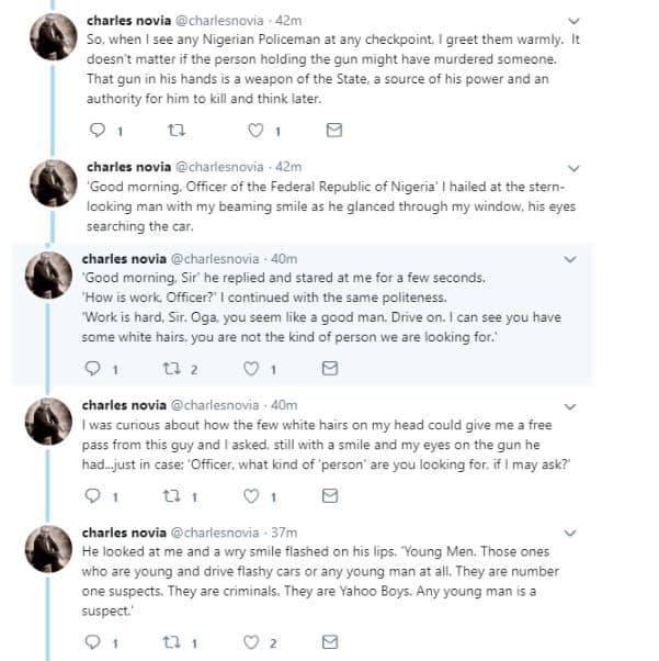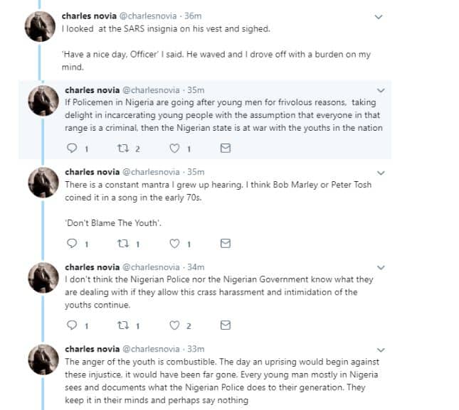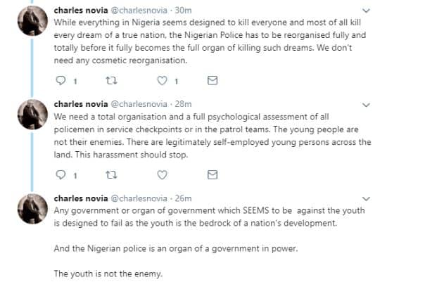 Novia while condeming the act of the SARS officer, pointed out that most Nigerians are rude to armed police officers which is very wrong.