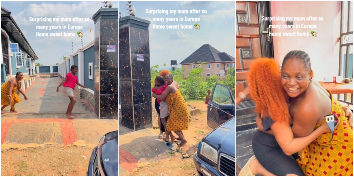 A lady who spent numerous years in Europe has surprised her mother with an unexpected visit, creating a moment of pure joy and jubilation.