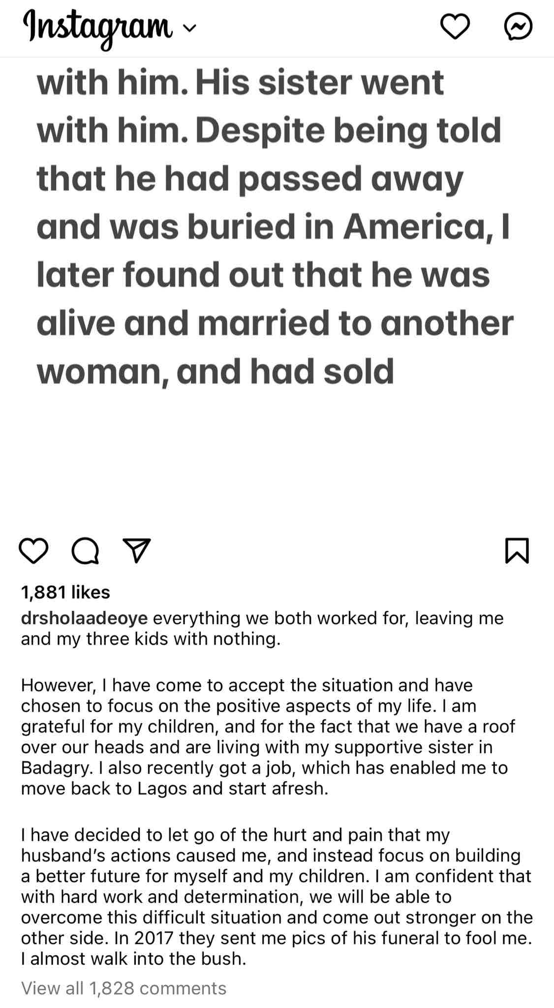 A relationship adviser, Dr Gbadebo Adeoye on Instagram shared the heartwrenching story on his page following an anonymous narration from the woman.