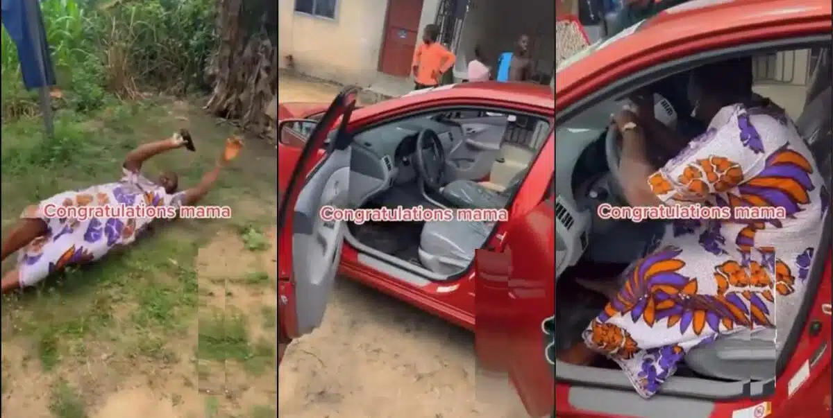 A Nigerian mother experiences immense joy following the surprise gift of a new car from her son as a gesture of appreciation.
