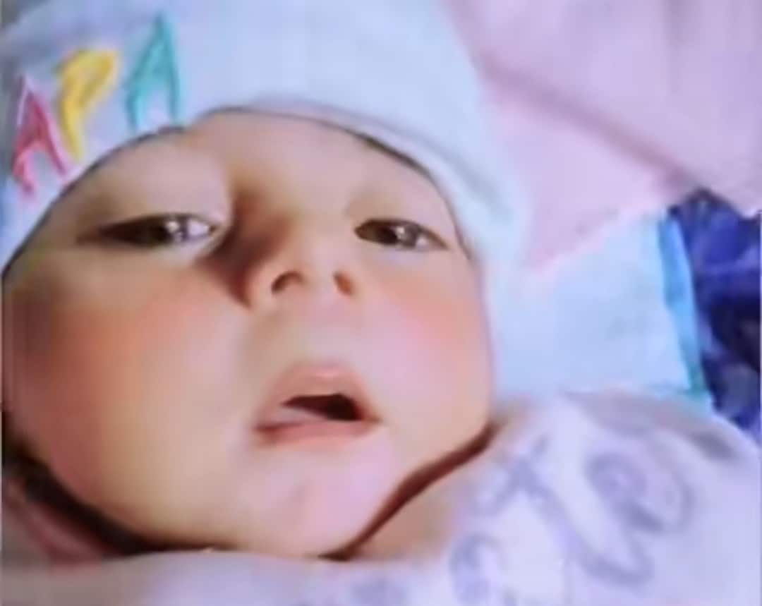 In the footage, a little girl dressed in baby clothes is gently laid down by her caretaker. As she closes her eyes and is gently tapped, it is presumed she is falling asleep.