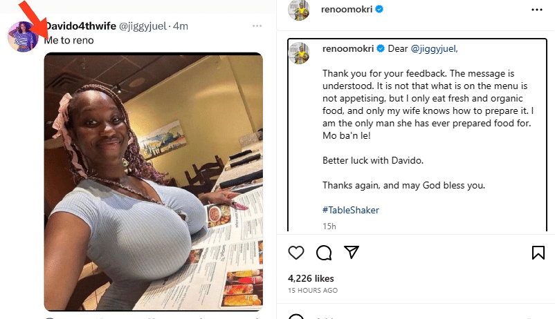 topeagbabo remarked: “This is a very strategic move by @davido4thwife just imagine the attention she has been attracting and @renoomokri didn’t fall but also explored the opportunity while the masses do the rat race.”
