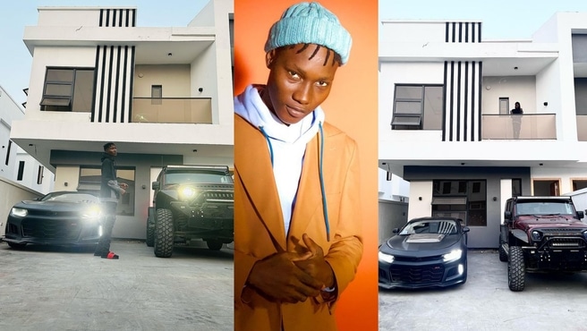 The 27-year-old musician took to his Instagram page to unveil the ritzy edifice, with two wonder rides parked in the compound.
