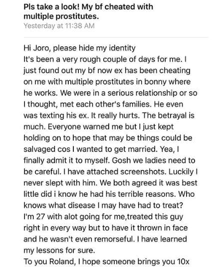 ‘My boyfriend cheated with multiple prostitutes’ – Nigerian lady cries out