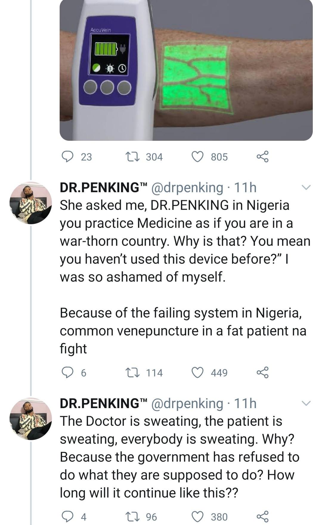 @Drpenking narrated how he was chatting with his friend who’s a doctor in Finland and when he narrated how difficult searching for vein was, his doctor friend broke down in tears.