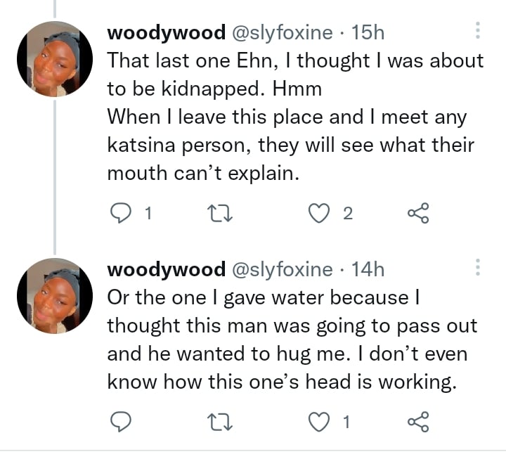 “That last one Ehn, I thought I was about to be kidnapped. Hmm When I leave this place and I meet any katsina person, they will see what their mouth can’t explain”