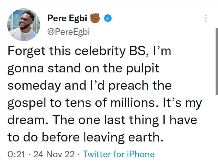 “Forget this celebrity BS, I’m gonna stand on the pulpit someday and I’d preach the gospel to tens of millions. It’s my dream. The one last thing I have to do before leaving earth”.