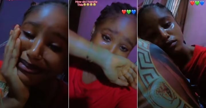 In the video, the heartbroken lady cried uncontrollably while showing off her pregnancy test result.