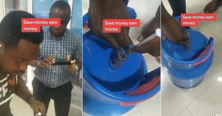 A Nigerian man has shared a video of himself adding a liquid to his gas cylinder to increase efficiency.