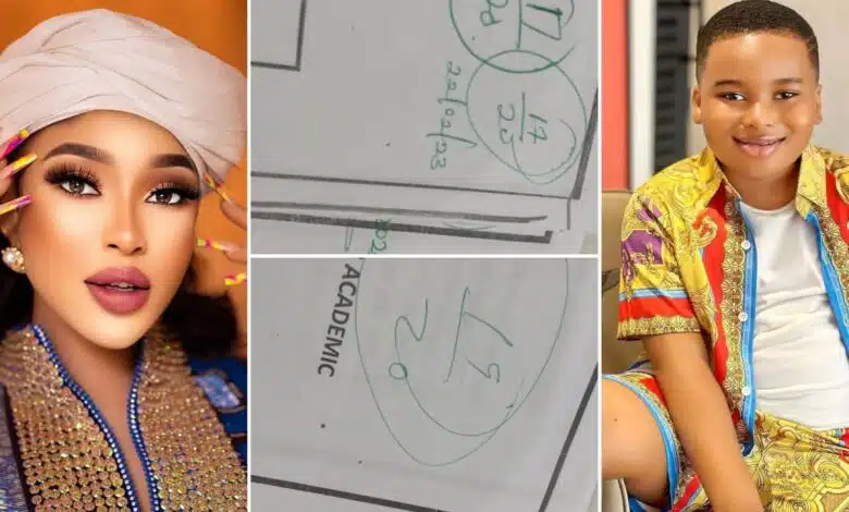 “My head is bigging” – Photos of Tonto Dikeh’s son’s grades in school surfaces