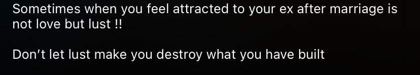 “Sometimes when you feel attracted to your ex after marriage is not love but lust. Don’t let lust make you destroy what you have built.”