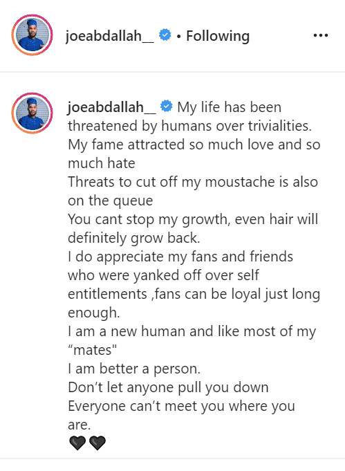 Former big brother Naija housemate, Joseph Abdallah has revealed that his fame attracted so much love and so much hate.