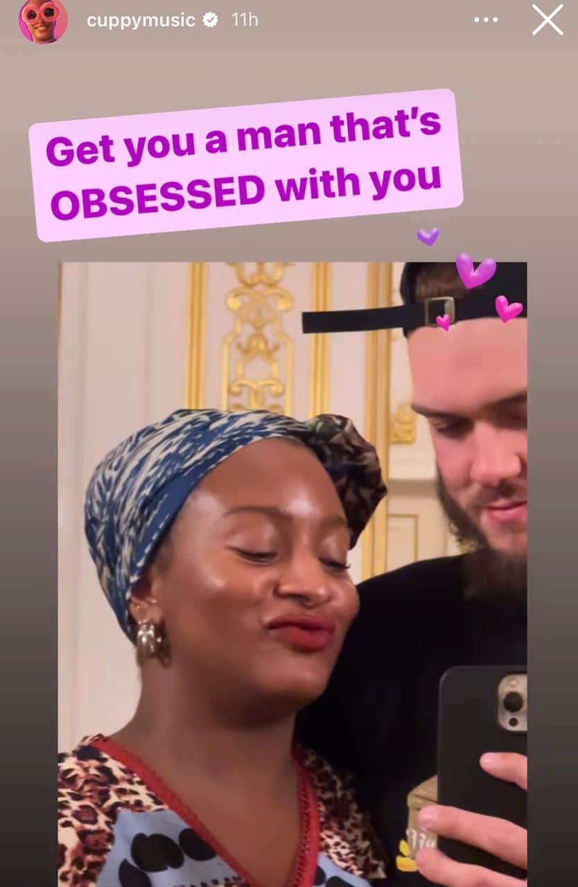 Now, cuppy has disclosed that her man is obsessed with her. She proceeded to advise ladies to get themselves a man like that. Cuppy takes to Instagram to share an adorable video of herself with Ryan, while he dotted her with love and admiration.