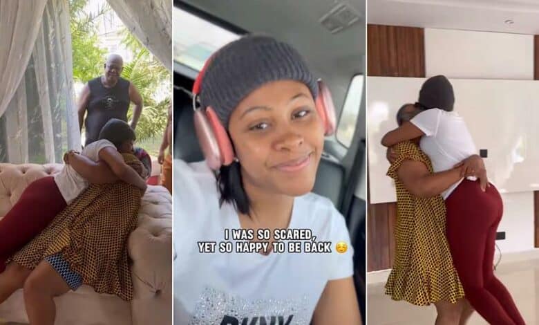 Her mother was so shocked to see her and almost removed her clothes. The lady’s father smilrd in the video as he looked at his daughter.