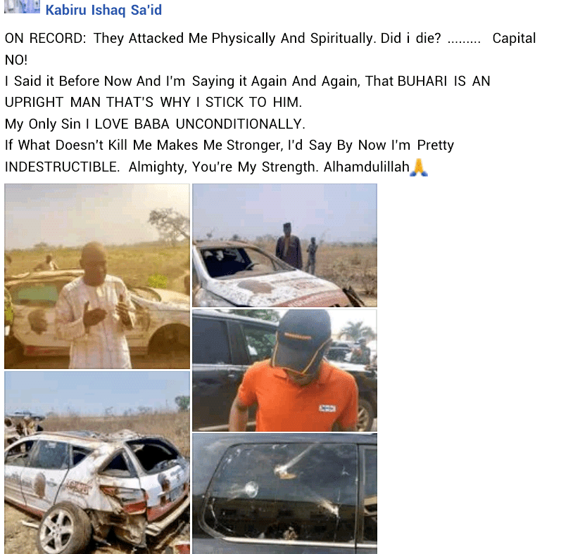 According to a Facebook user identified as Kabiru Ishaq Sa’id, he has been facing spiritual attacks for standing tall for the President of Nigeria, and now, he is faced with physical attacks.
