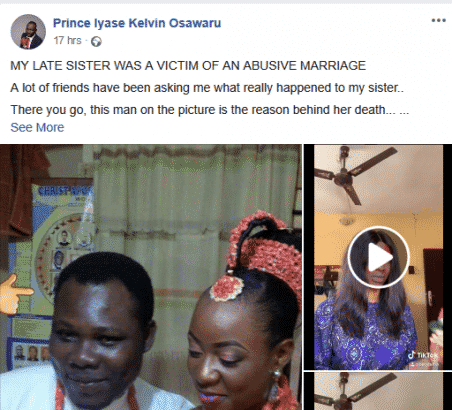 A Nigerian man identified, Prince Iyase Kelvin has narrated how his pregnant sister died from domestic violence.