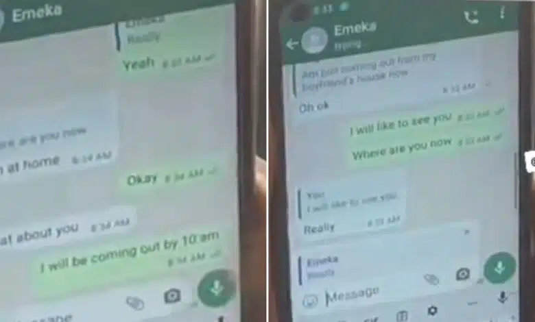 “My relationship of 5 years has crashed” – Man bumps into lover sending WhatsApp messages to side boo (Video)