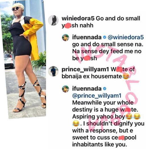 Another follower also drew her attention to a certain ex-housemate who recently underwent butt surgery, Ifu Ennada who didn’t welcome such a comment gave him an ugly lambast.