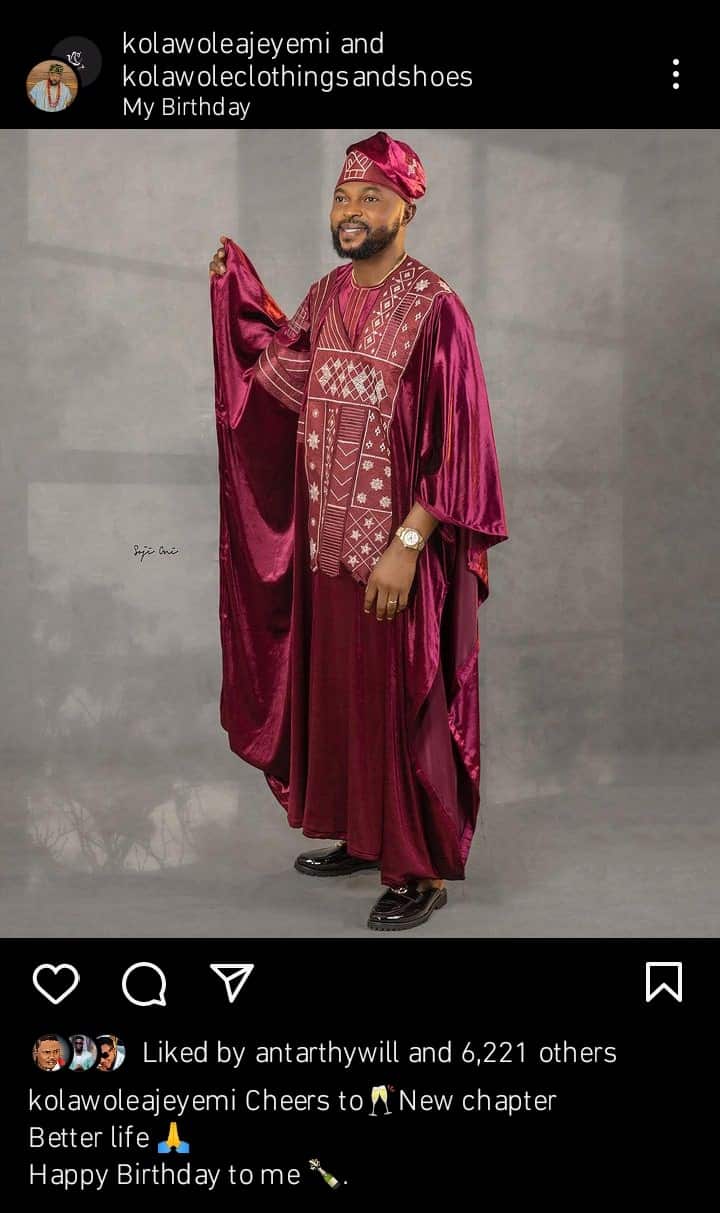 She wrote: “Happy birthday to my small god @kolawoleajeyemi Oko mi atta. Love you sooooooooooo much.”