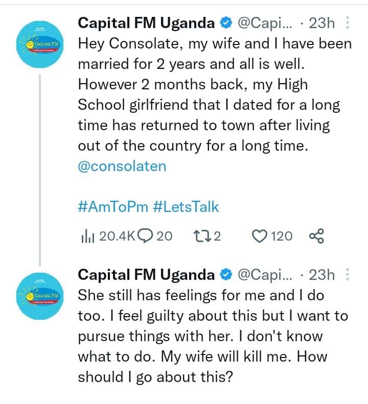 “My wife will kill me” – Nigerian man in dilemma as ex-girlfriend returns, says he still has feelings for her