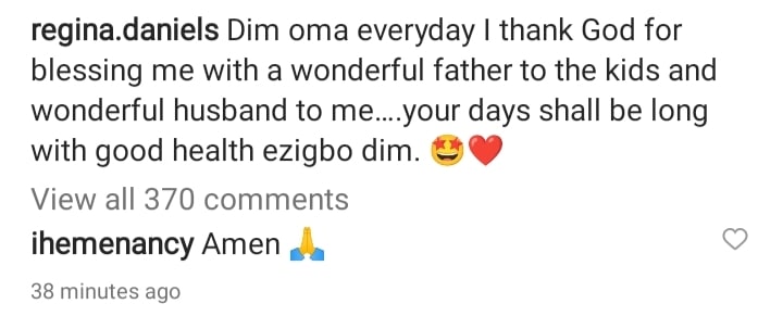 “Dim oma everyday I thank God for blessing me with a wonderful father to the kids and wonderful husband to me….your days shall be long with good health ezigbo dim,” she captioned.