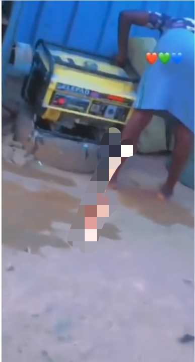 A lady has recently been spotted giving her generator a nice soap and water bath in Ibadan, Oyo state.