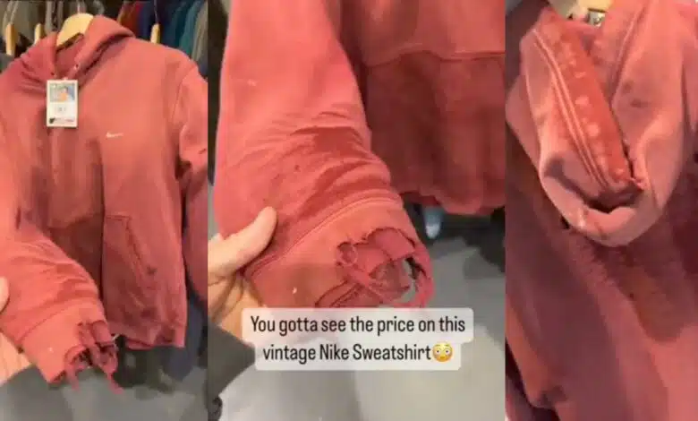 Netizens have reacted to a video showing the price of purchasing a vintage Nike designer ‘rag’ sweater at a clothing store.