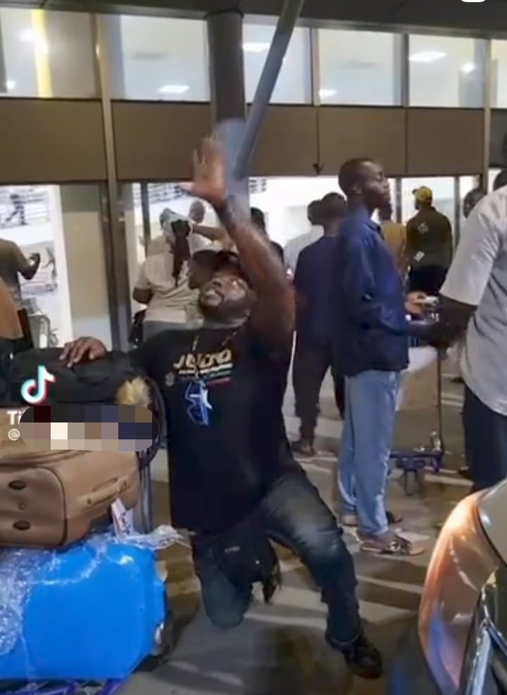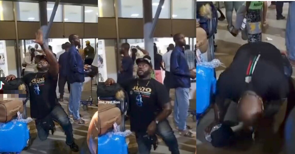 Abroad returnee causes a buzz with an unusual behavior he displayed at an airport after his plane landed safely in Nigeria.