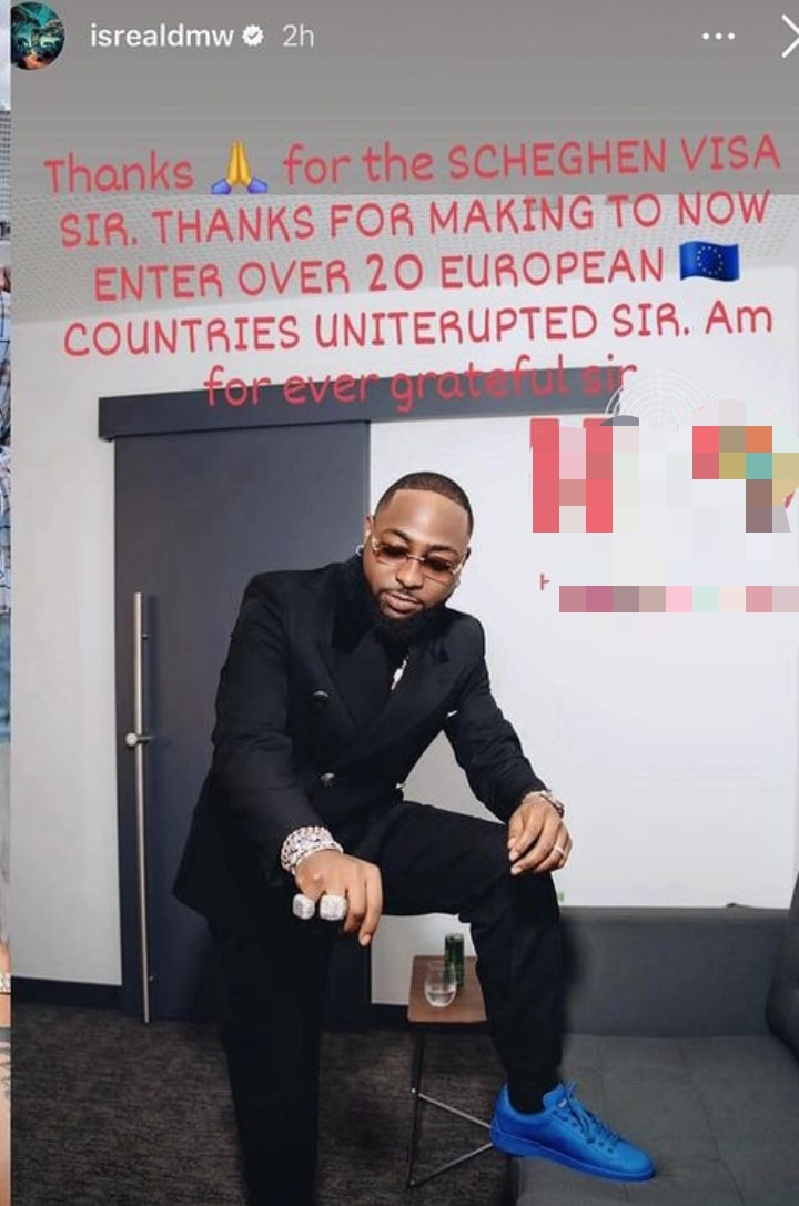 Popular singer, Davido’s logistics aide Israel DMW winds down the year with a note of appreciation to his boss for giving him opportunity to tour 20 European countries.
