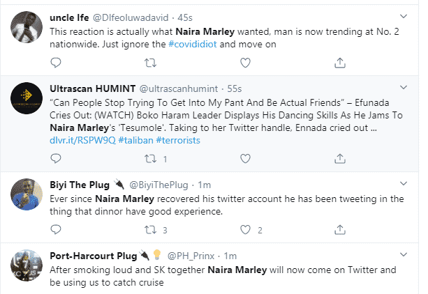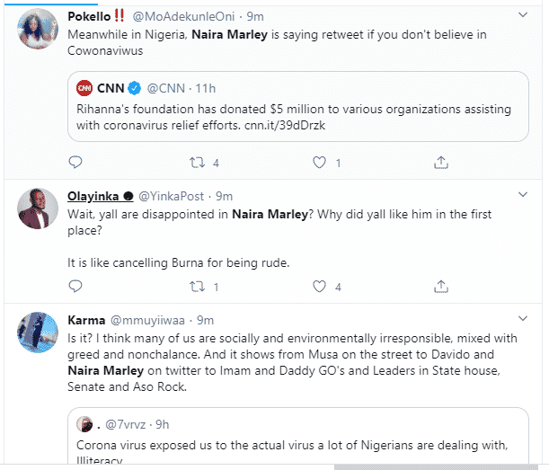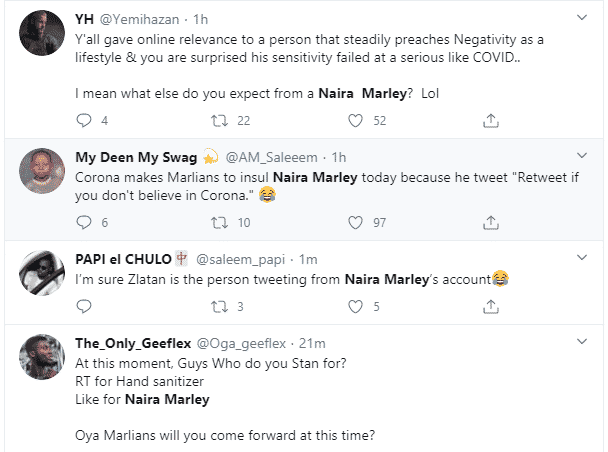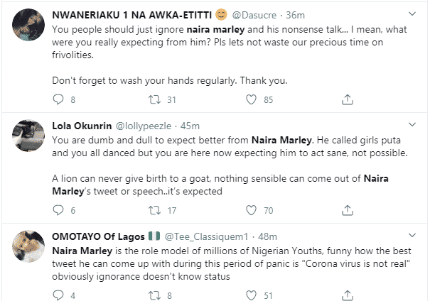 Naira Marley however got tackled by some social media users who accused him of using his platform to disseminate “wrong information” which is not wanted at this time.