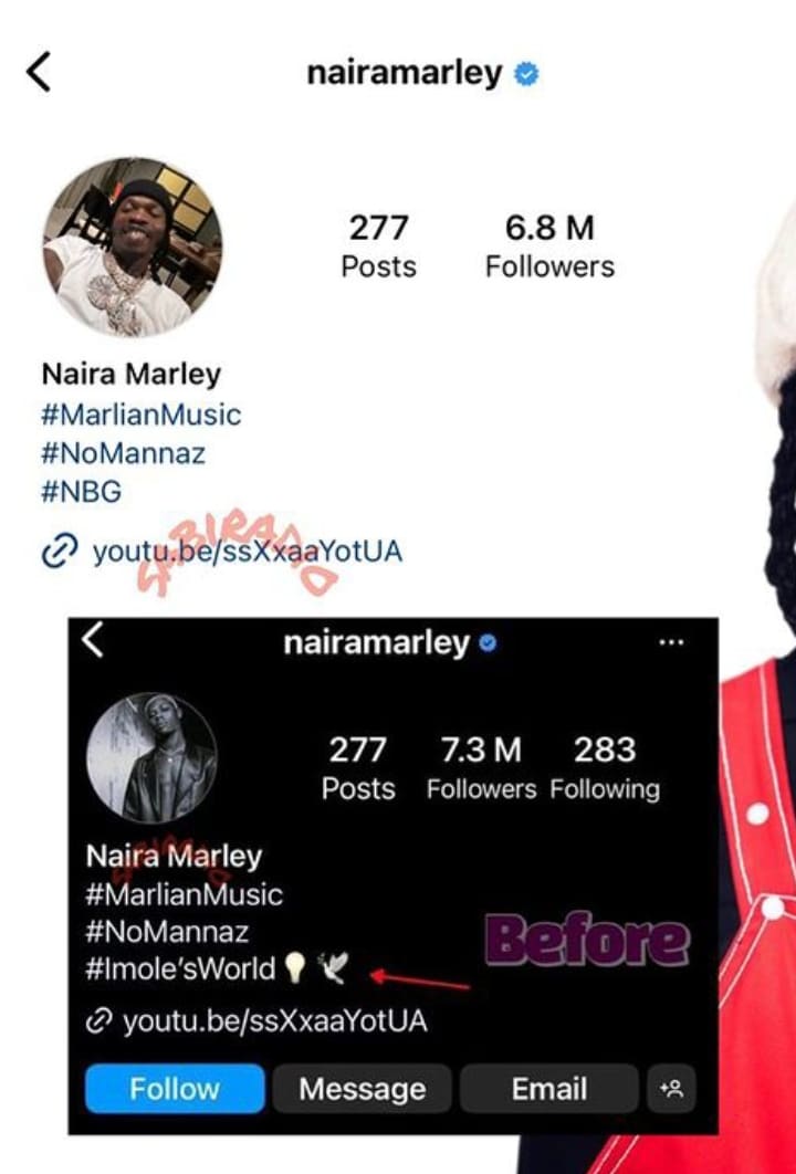 Following his return to social media, Naira Marley has removed Mohbad’s photo from his Instagram page, as well as his name from his account.