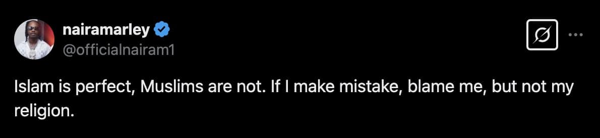 Controversial Nigerian singer, Abdulazeez Fashola, popularly known as Naira Marley, has urged fans to separate his personal acts from his religion, Islam.