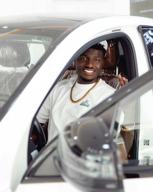 The content creator who could not contain the joy took to his official Instagram page to make the announces while sharing different poses with his new car.