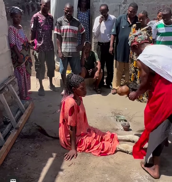 Native doctor filmed trying to heal woman whose legs reportedly turned to that of cow after sleeping with married man (Video)