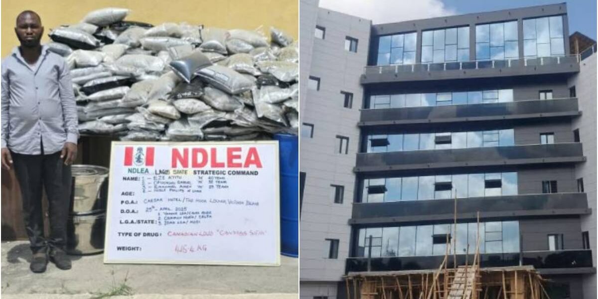 The National Drug Law Enforcement Agency (NDLEA) has seized 589 bags of Canadian loud, a potent strain of cannabis weighing a total of 417.3kg and valued at N1,042,500,000 in street value, after raiding a hotel in Victoria Island, Lagos, used as a front for drug distribution.