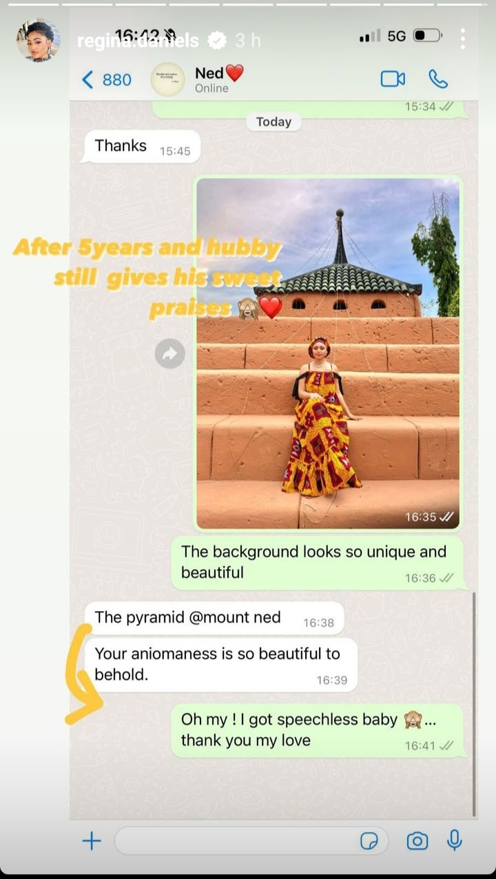 She added that after 5 years of being together her husband has continued to give the best praises to her.