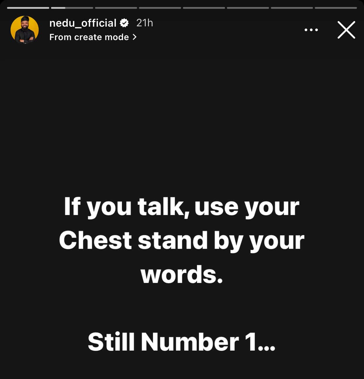 Following Yvonne Jegede’s apologies message, Nedu posted a brief remark on his Instagram stories. He advised individuals to stick to their words after they’d spoken.