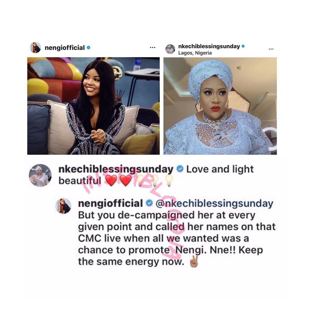 “But you dey de-campaign her at every given point and called her names on that CMC live, when all we wanted was a chance to promote Nengi. Nne, keep the same energy.”