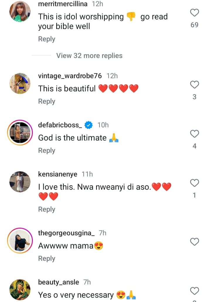 Merriti Mercillina stated: “This is idol worshipping. Go read your Bible well”.