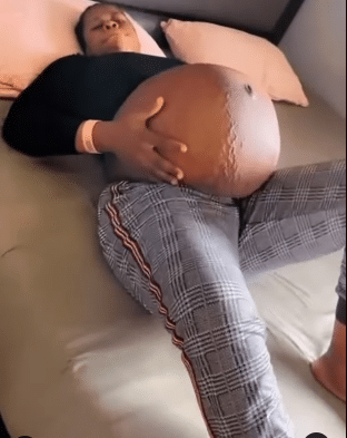A pregnant lady has set the internet buzzing with reactions as she shares a video that captures her huge baby bump.