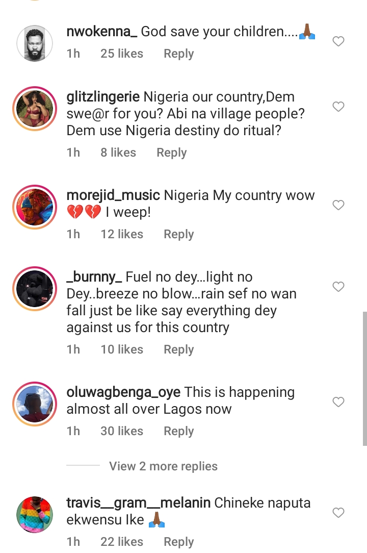 _burnny_ wrote: “Fuel no dey…light no Dey..breeze no blow…rain sef no wan Y fall just be like say everything dey against us for this country”