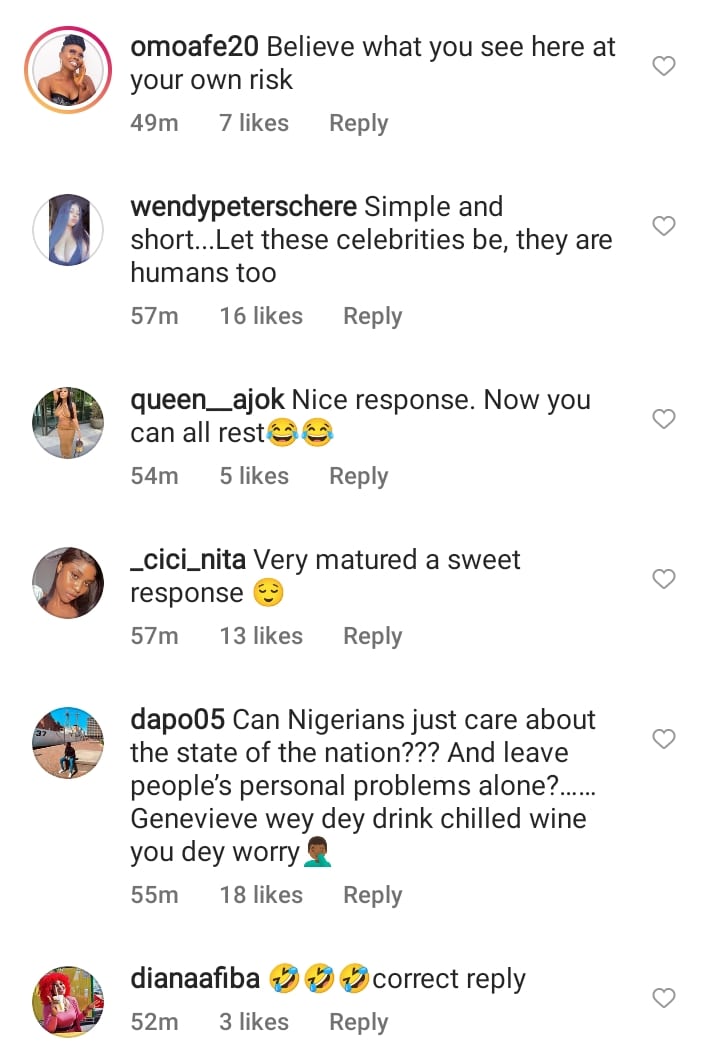 Netizens laud Uche Jombo’s reply to fan who asked her to check up on Genevieve