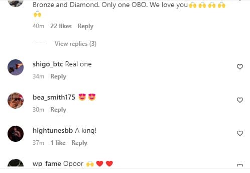 O.B.O, however, handed one of the diamond pieces to his driver as seen on his Instagram story being praised by the beneficiary.