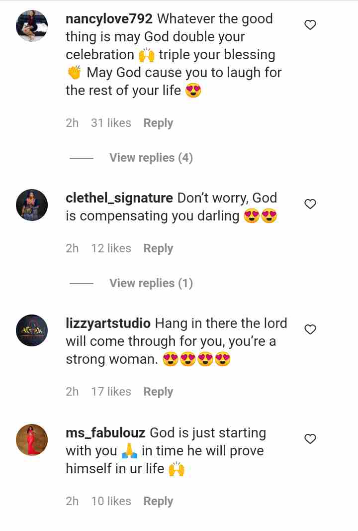 Reacting to the post, fans prayed for all she’s expecting to come to pass.