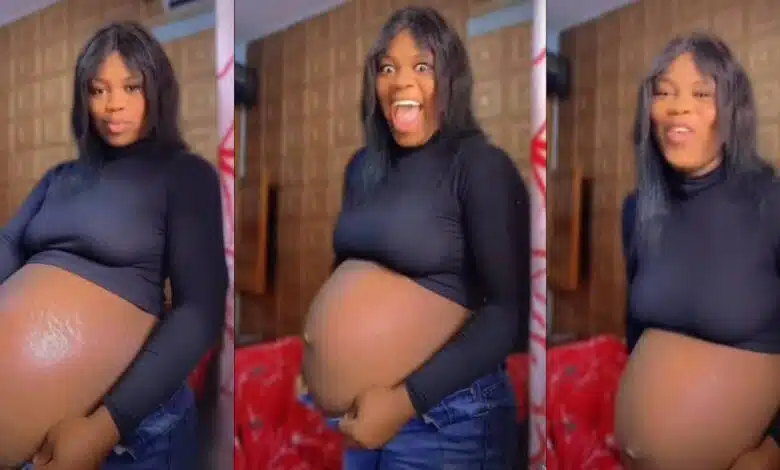 A heavy-sized baby bump pregnant lady appeared online, causing social media users to rage as she roughly plays with her bump.