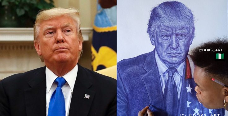 United States President Donald Trump has referred to a Nigerian painter, Creative_Doks, as “a wonderful artist” after he tweeted a portrait of the American leader.
