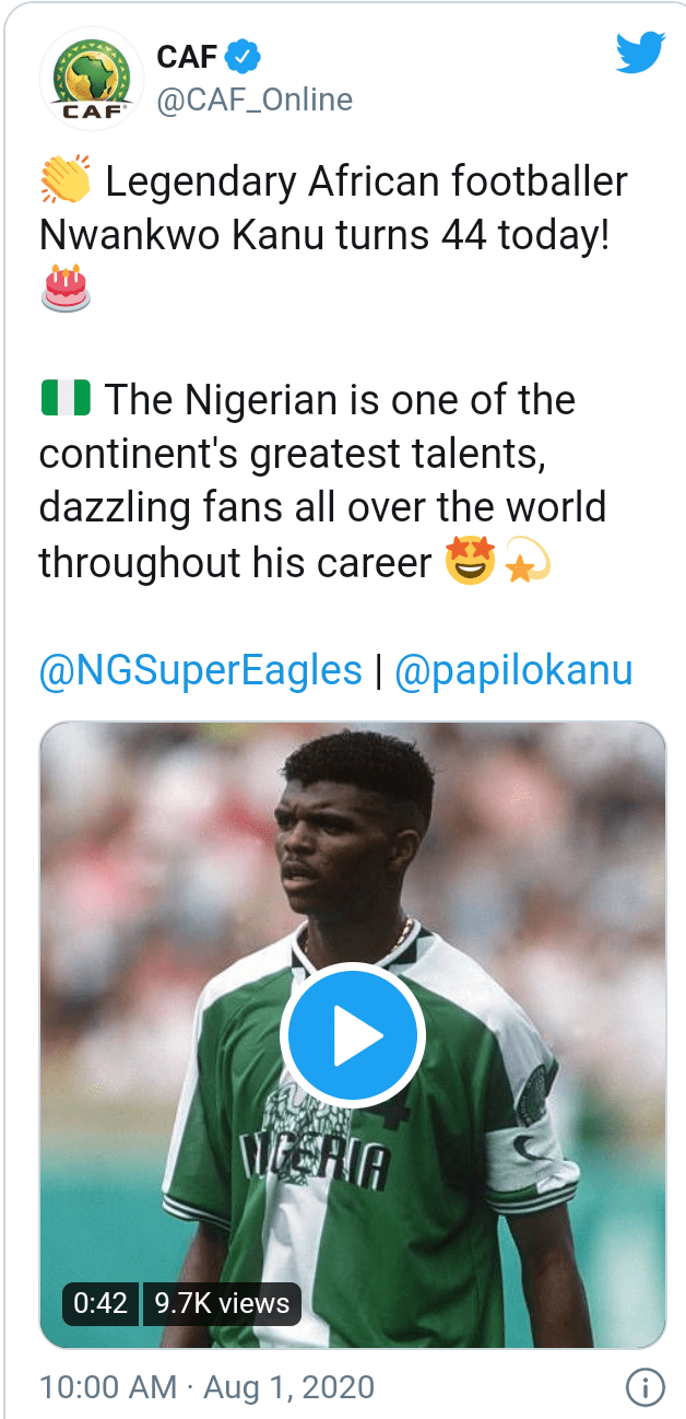 NFF, CAF and FIFA celebrate Kanu Nwankwo on his 44th birthday